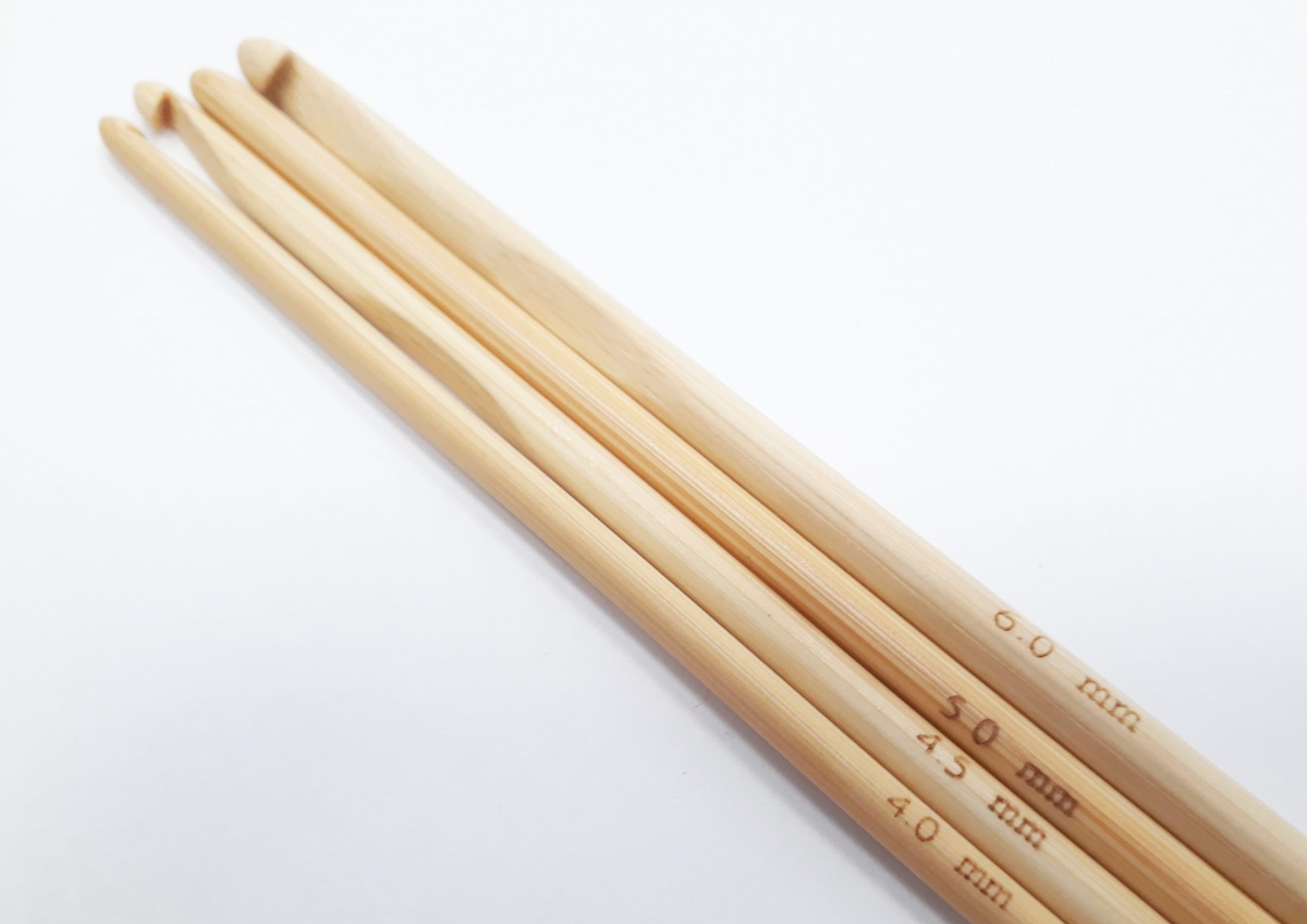 Aguja de crochet bambú x 1ud. Medidas Nro. 4, 4.5, 5 y 6.