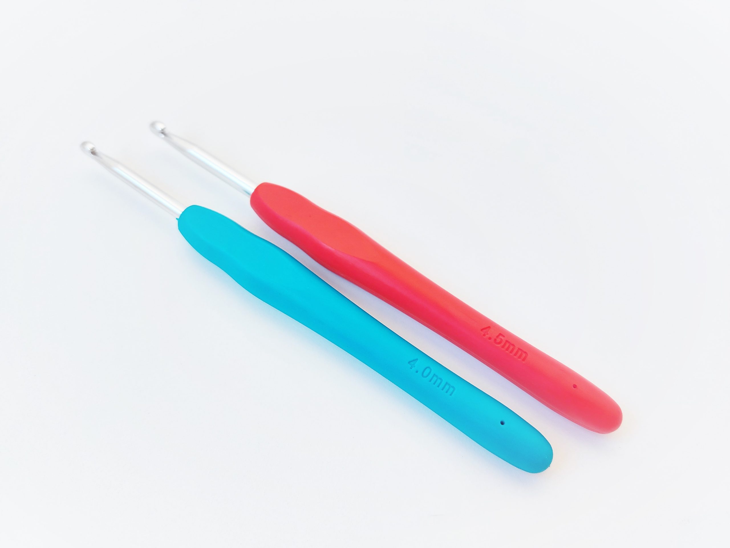 Aguja de crochet, aluminio con mango de silicona x 1ud. Medidas: Nro.4mm y Nro.4.5mm