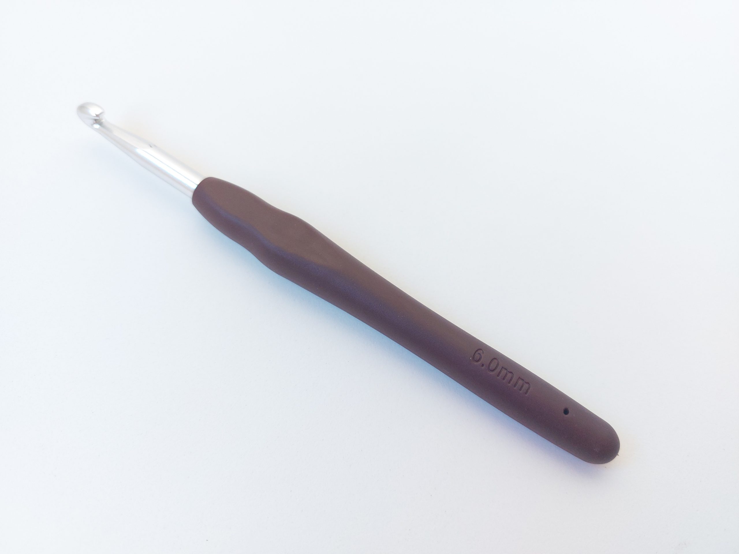 Aguja de crochet, aluminio con mango de silicona x 1ud. Medida: Nro.6mm