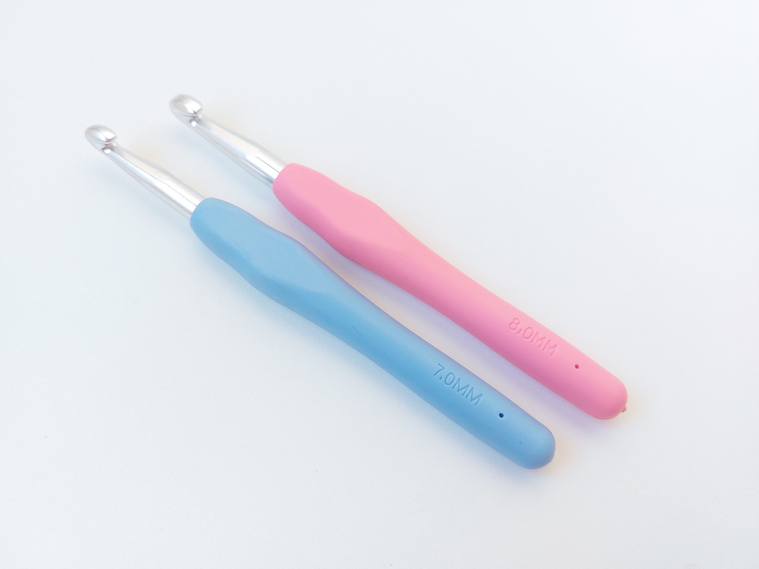 Aguja de crochet, aluminio con mango de silicona x 1ud. Medidas: Nro.7mm y Nro.8mm