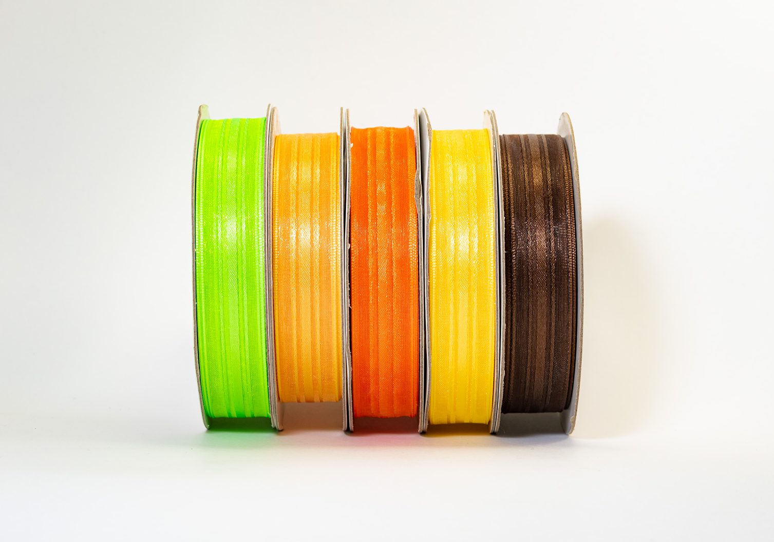 Cinta combinada organza y satín, ancho 5/8” (1.59cm), rollo de 25yds (22.8m).
