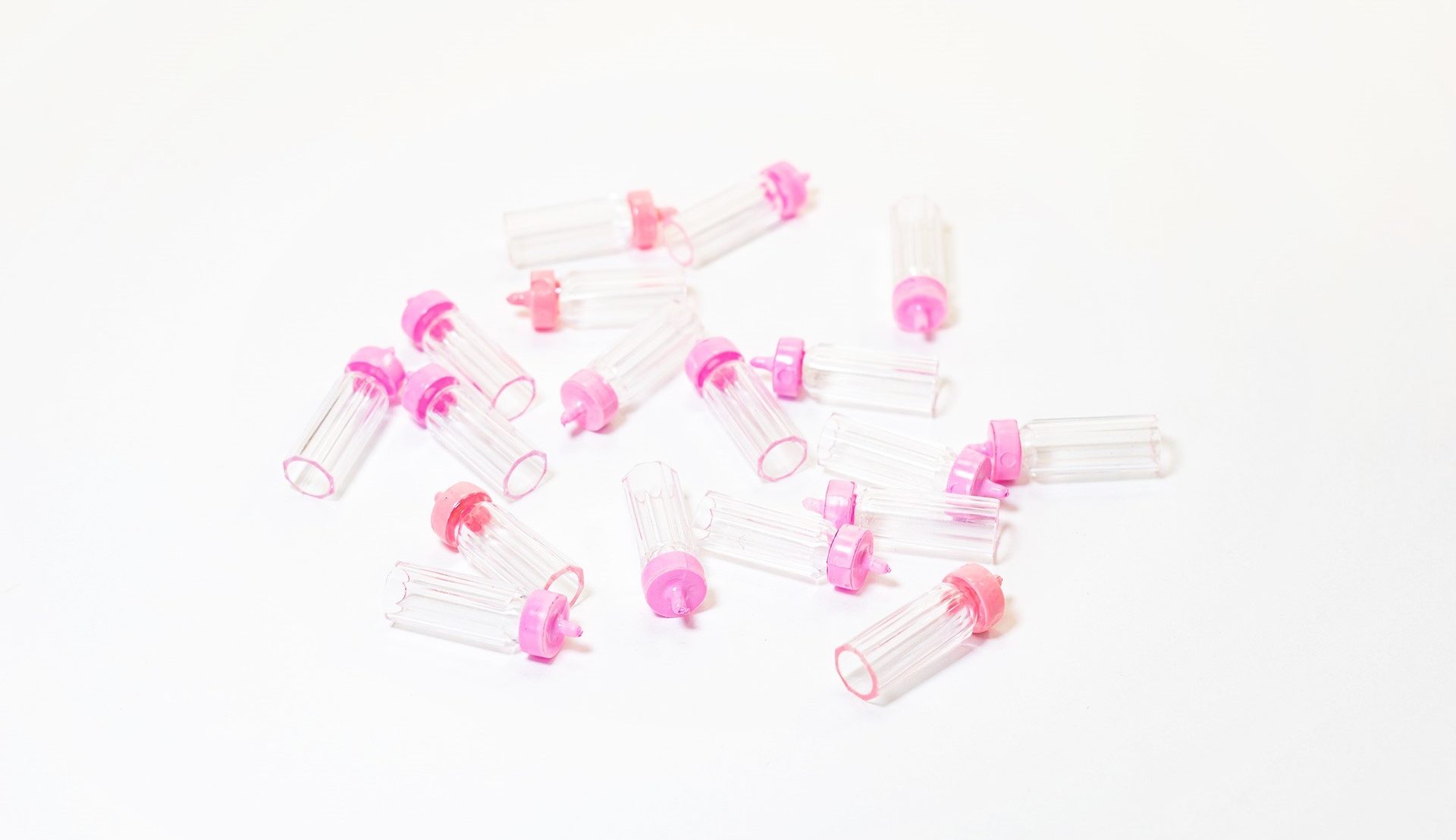 Mini mamadera, 2.5cm x 0.7cm. Pack x 24 unidades.