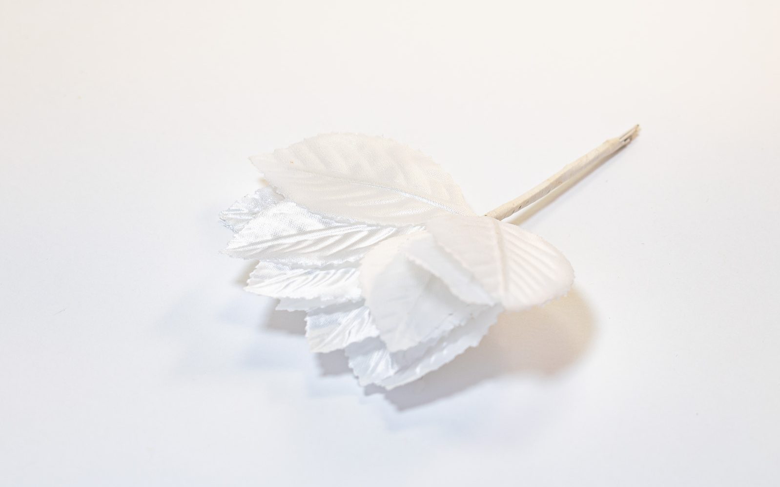Ramito de 12 hojas blancas de tela. Pack de 12 ramitos (cantidad: 144 hojas). Cada hoja mide 5.5cm x 3cm. Se pueden separar en forma individual.