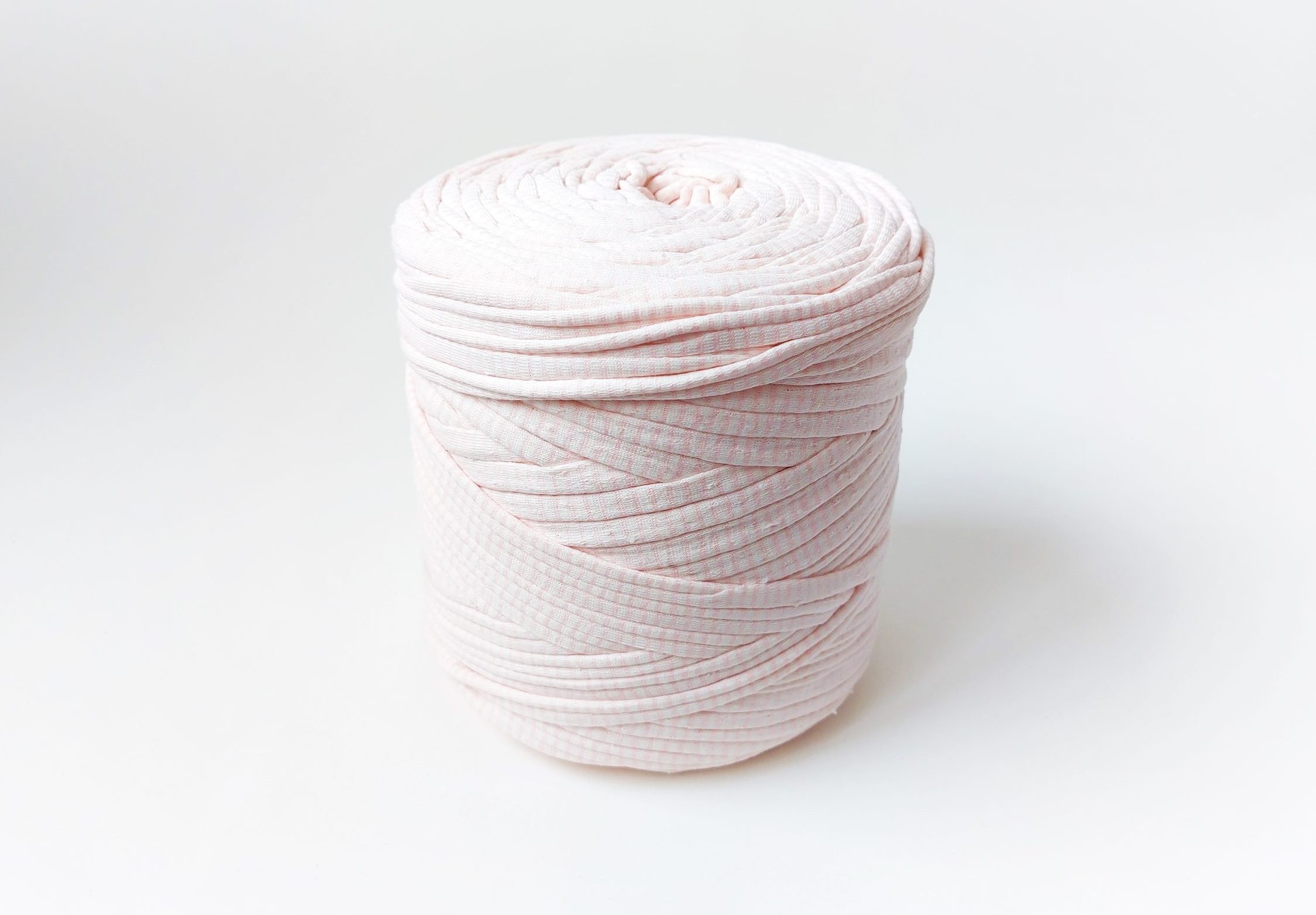 Trapillo Estampado, 650 gramos aprox. (120mts.). Composición: 95% algodón, 5% licra. Color: rosa y blanco.