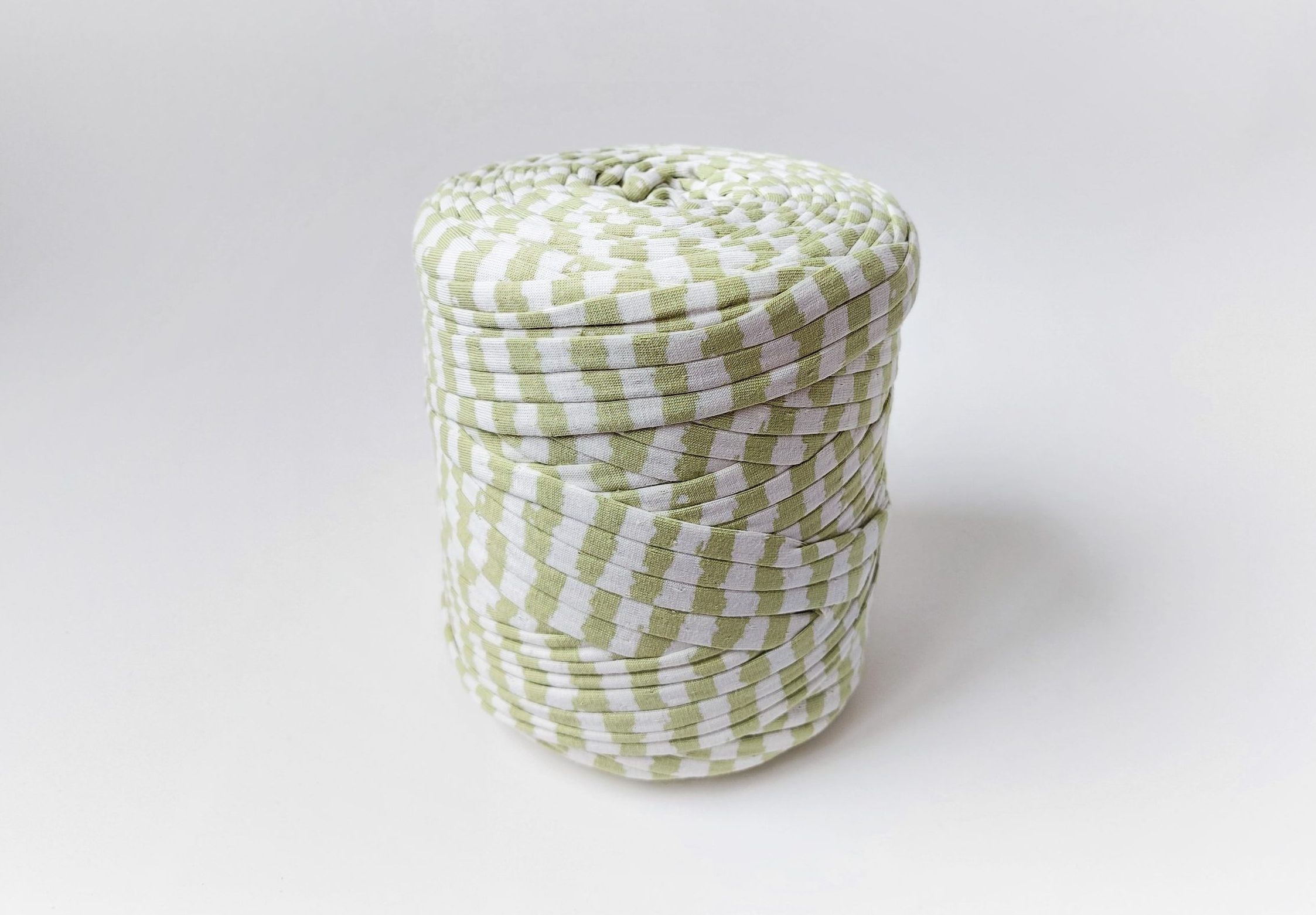 Trapillo Estampado, 650 gramos aprox. (120mts.). Composición: 95% algodón, 5% licra. Color: verde y blanco.
